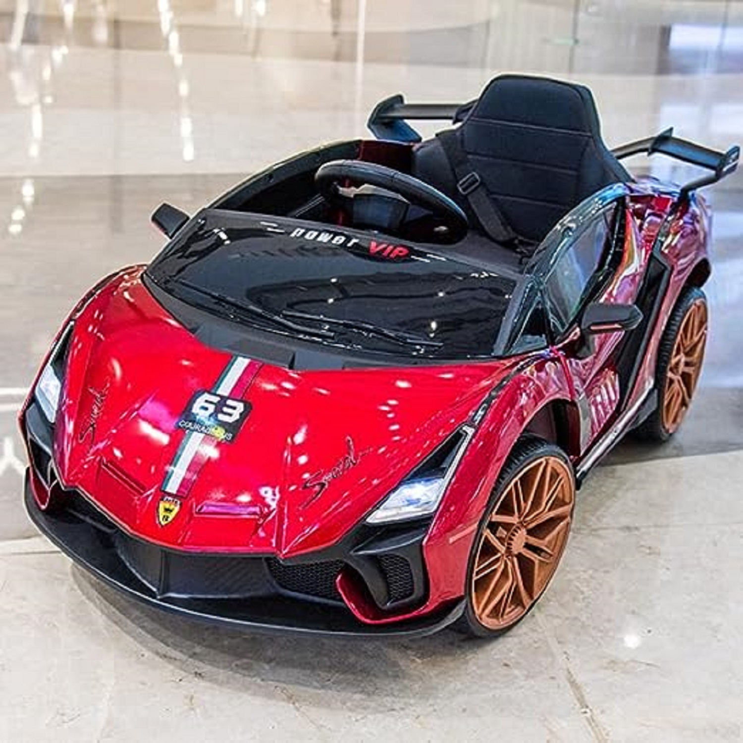 JNCreations Lamborghini 12V Kids Ride-On Battery Powered Sports YT-666 Car (Red) Brand: Generic Material: Platic Size: 108 x 58 x 31 Centimeters Item Weight: 20 Kilograms Item Dimensions LxWxH: 108 x 58 x 31 Centimeters