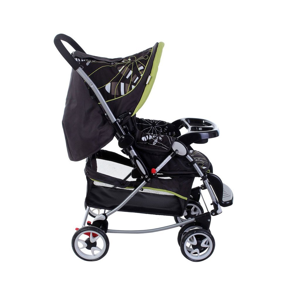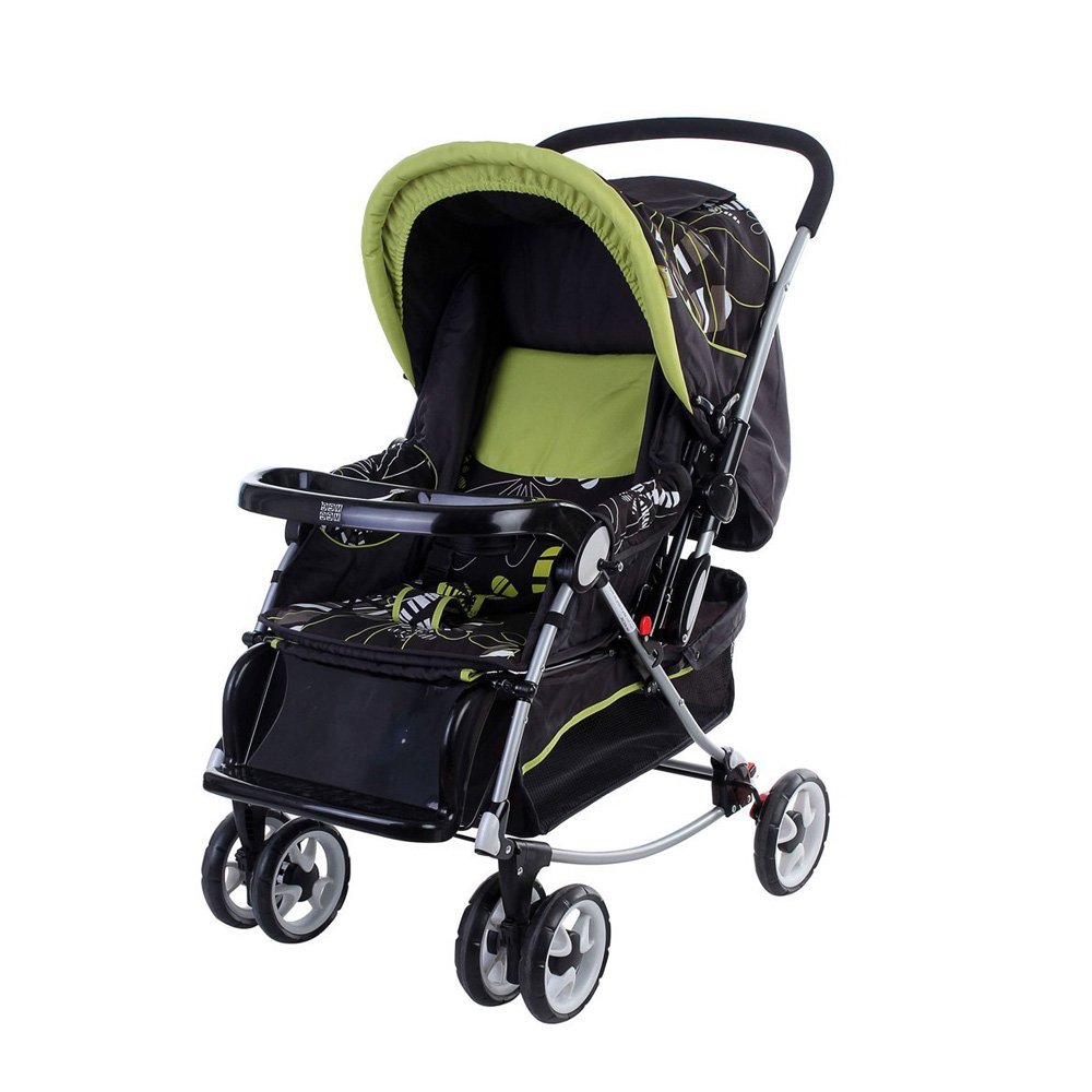 It is difficult to experience the surprise and excitement your little one will go through when experiencing the world around for the first time. Mee Mee baby pram black/green offers conveniences of both rocker and pram in a six wheeled design. Lying or sitting comfortably in a pram, babies come in touch with new sounds, movements, colours and shapes. With a pram as versatile as Mee Mee baby pram, the experience is transformed into a delight of boundless energy. This features a three position seat (sleeping, reclining and sleeping). Also has a reversible handle for rear and front facing. Ultra lightweight to carry around. Gift your little one this pram, because your kid is worth it!