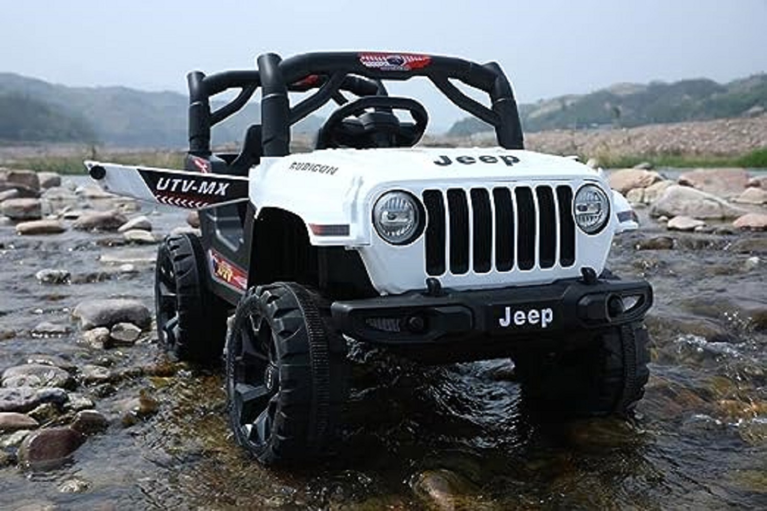 SHAKYA WORLD QUTE Giant Battery Operated Rechargeable Ride on Jeep for Kids with Remote Control, 1 to 4 Years, White Brand: SHAKYA WORLD Material: Polyvinyl Chloride Size: Standard Item Weight: 15 Kilograms Item Dimensions LxWxH: 106 x 58 x 56 Centimeters
