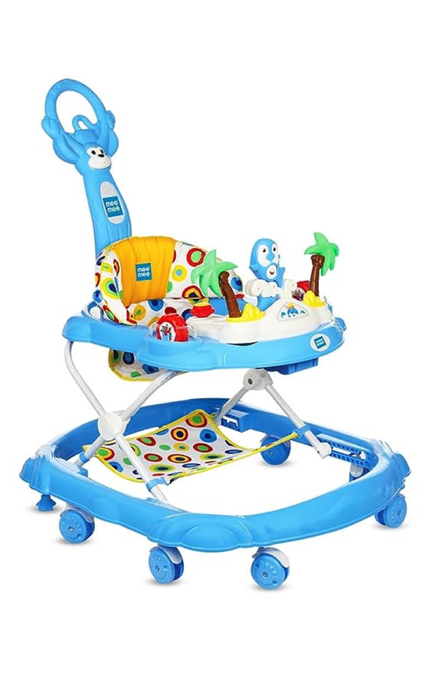 Mee Mee Premium Baby Walker - Adjustable Height, Detachable Cushioned Seat, Music & Toy Bar - Ideal for Kids/Toddlers 0-2 Years - Max Weight 15kg - Stylish Blue Design Colour: Blue Material: Plastic Brand: Mee Mee Age Range (Description): Toddler Item Dimensions LxWxH: 76.2 x 66 x 16.3 Centimeters Style: Baby Walker Item Weight: 4.75 Kilograms Maximum Height: 60 Centimetres Maximum Weight Recommendation: 15 Kilograms